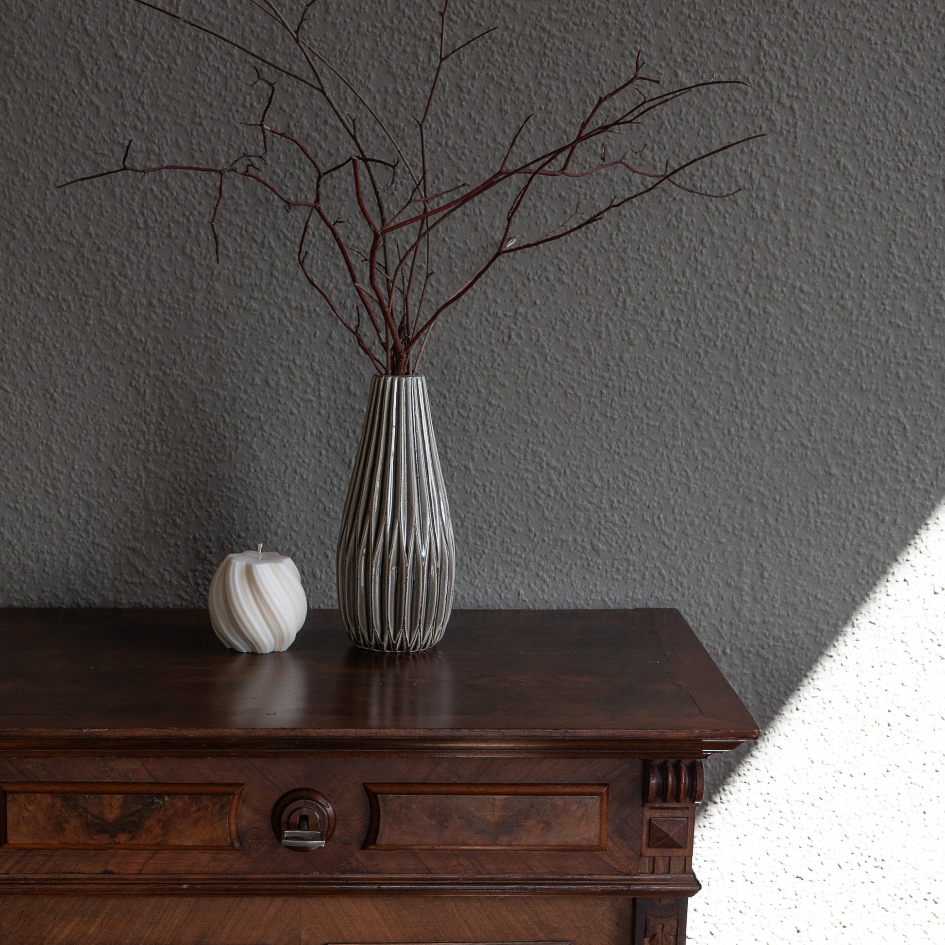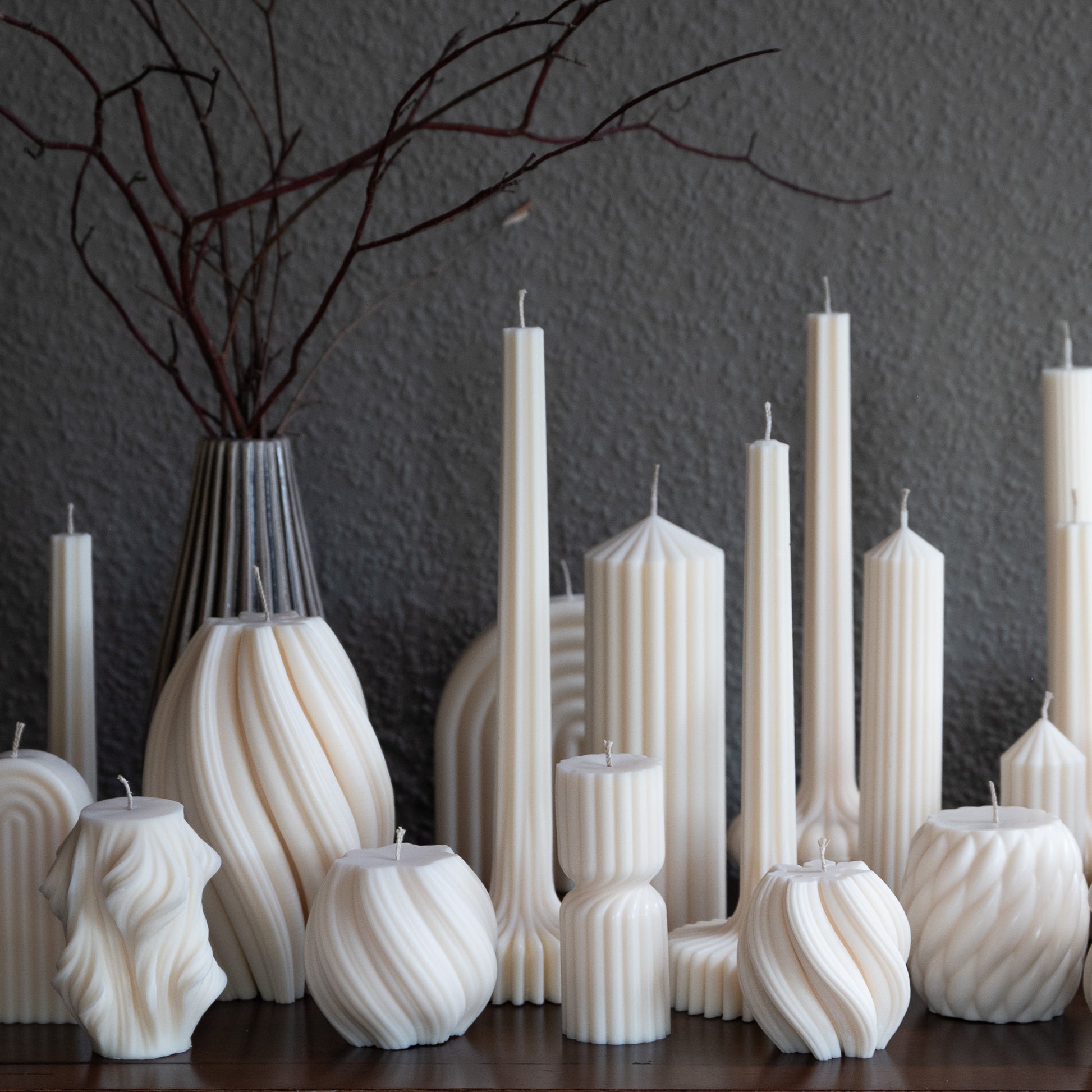Handgegossen in Hamburg – aus europäischem Bio-Rapswachs und mit einem Docht aus 100 % reiner Baumwolle (RAL-zertifiziert). Die skulpturale Form entsteht in ruhiger Handarbeit und macht jede Kerze zu einem Stück minimalistischer Gestaltung – kompromisslos in der Linie, klar im Ausdruck.